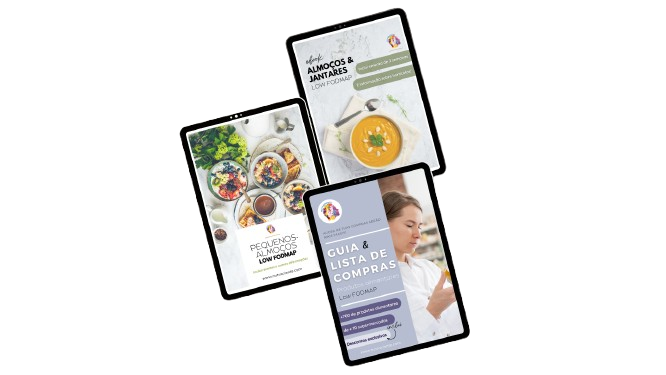 Workbooks das sessões temáticas, ebooks de receitas low FODMAP, ementas, entre outros (vê abaixo quais ebooks)