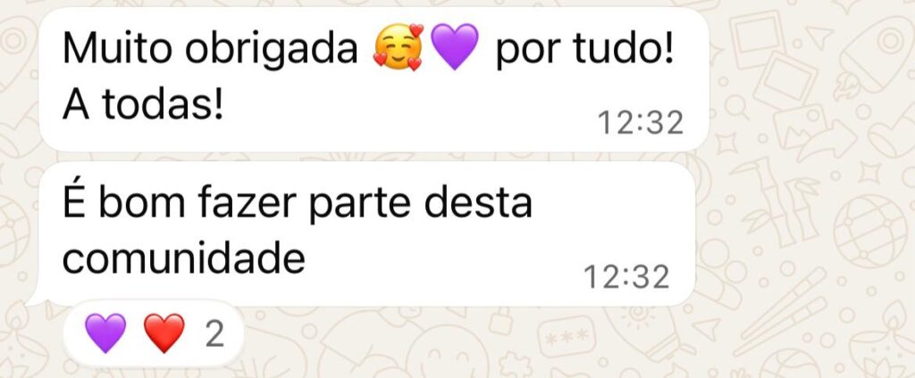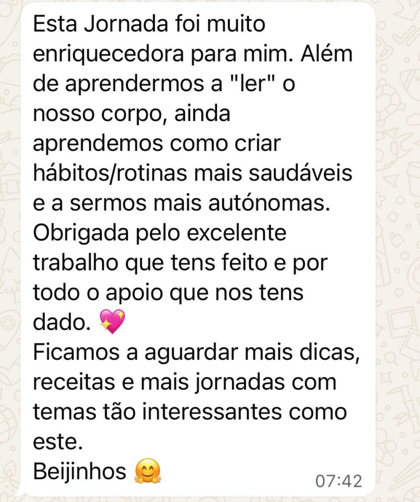 Grupo de apoio exclusivo da Jornada para partilha e apoio (WhatsApp). E...muito mais!